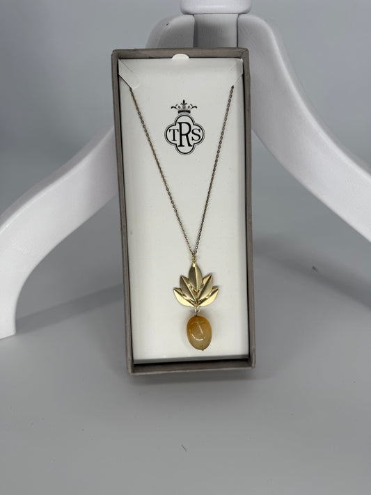 Gold Leaf Design Necklace with Natural Stone Pendant and Gold Leaf Design Bracelet