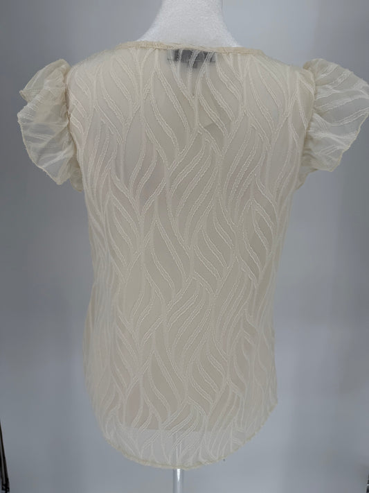 Ivory Cream Textured Top with Capped Flutter Sleeves and Lining