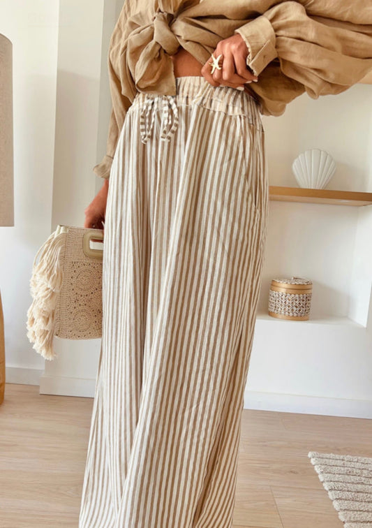 Regular price $19.99 USDRegular priceUnit price / perSale price $19.99 USDKhaki striped wide leg, drawstring pants