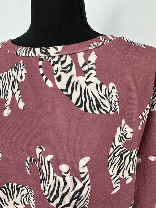 Regular price $18.99 USDRegular priceUnit price / perSale price $18.99 USDMauve Tiger Print Lightweight Sweater Top