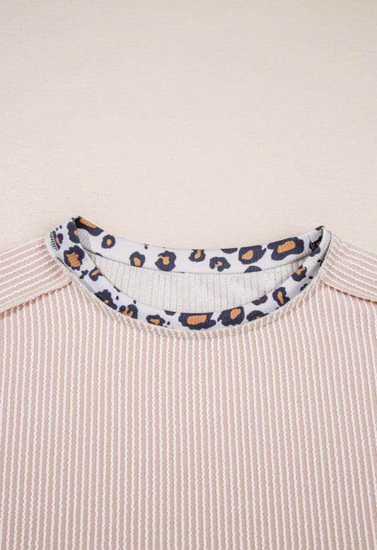 Regular price $19.99 USDRegular priceUnit price / perSale price $19.99 USDRibbed Animal Print Trim Short Sleeve Top