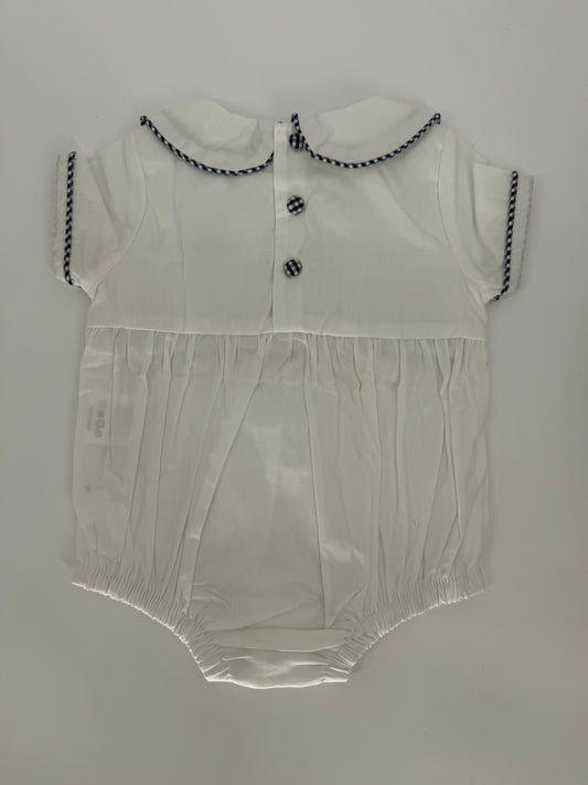 White Bubble Suit with Classic Sail Boat Smocking by Mudpie