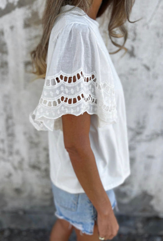 Regular price $19.99 USDRegular priceUnit price / perSale price $19.99 USDWhite Eyelet Ruffled Butterfly Sleeve Top