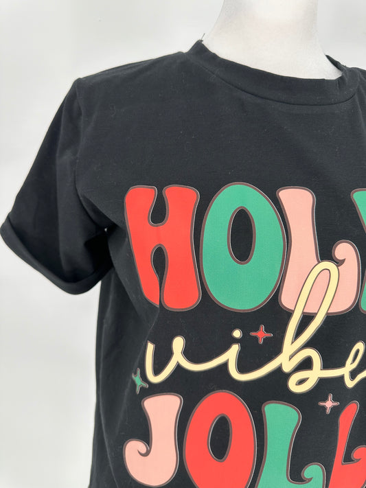 Black Holly Jolly T-Shirt with Cuffed Sleeved