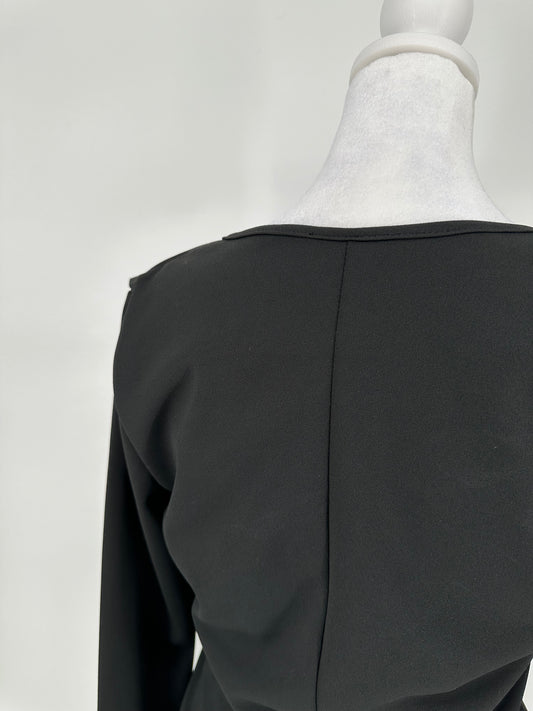 Black Long Sleeve Dress with Diagonal Shoulder Ruffle