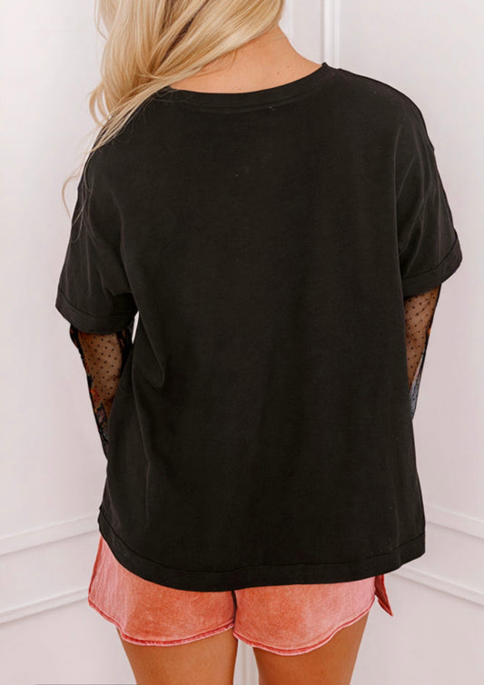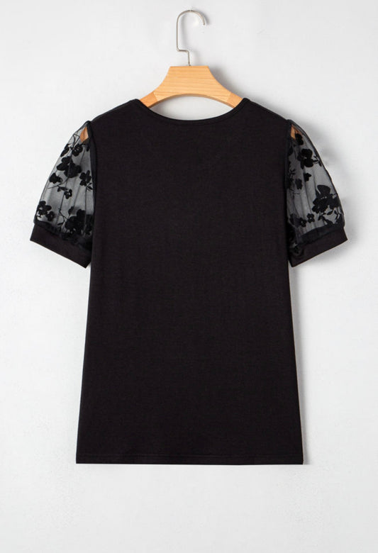 Regular price $18.99 USDRegular priceUnit price / perSale price $18.99 USDBlack T-shirt with sheer floral sleeves
