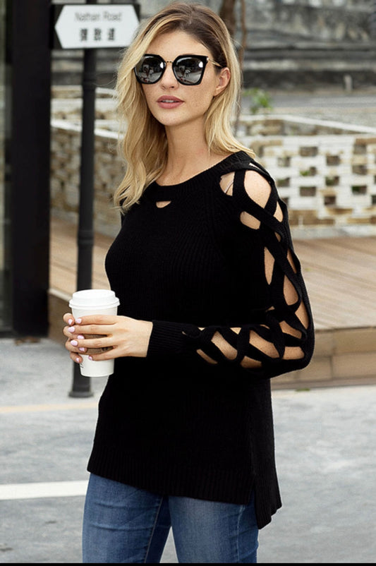 Regular price $24.99 USDRegular priceUnit price / perSale price $24.99 USDBlack Sweater with Lattice Long Sleeves