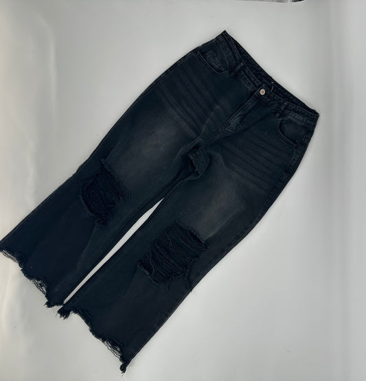 Regular price $32.99 USDRegular priceUnit price / perSale price $32.99 USDBlack Washed Wide Leg Distressed Crop Pants