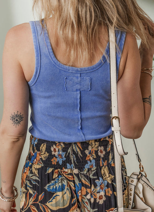 Regular price $23.99 USDRegular priceUnit price / perSale price $23.99 USDBlue Acid Washed Ribbed Vintage Tank
