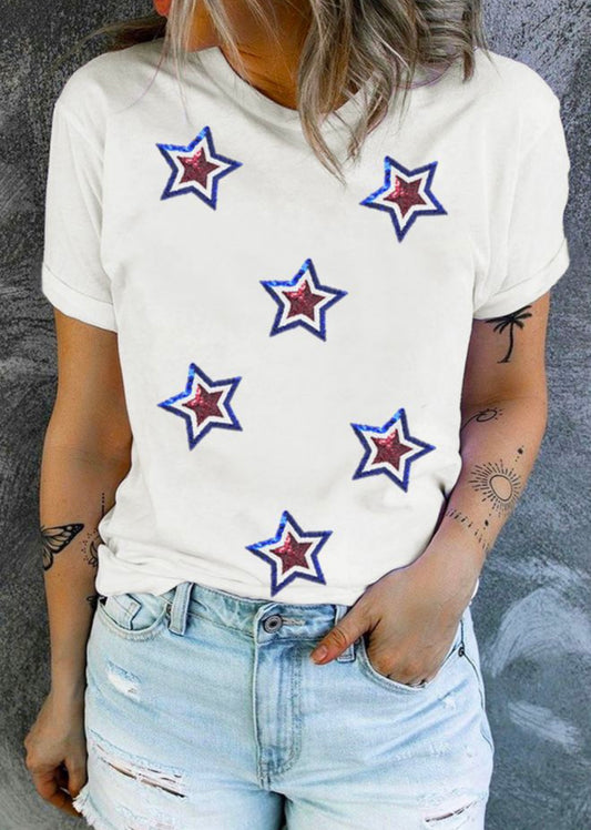 Regular price $19.99 USDRegular priceUnit price / perSale price $19.99 USDRed White and Blue Sequin Star T Shirt