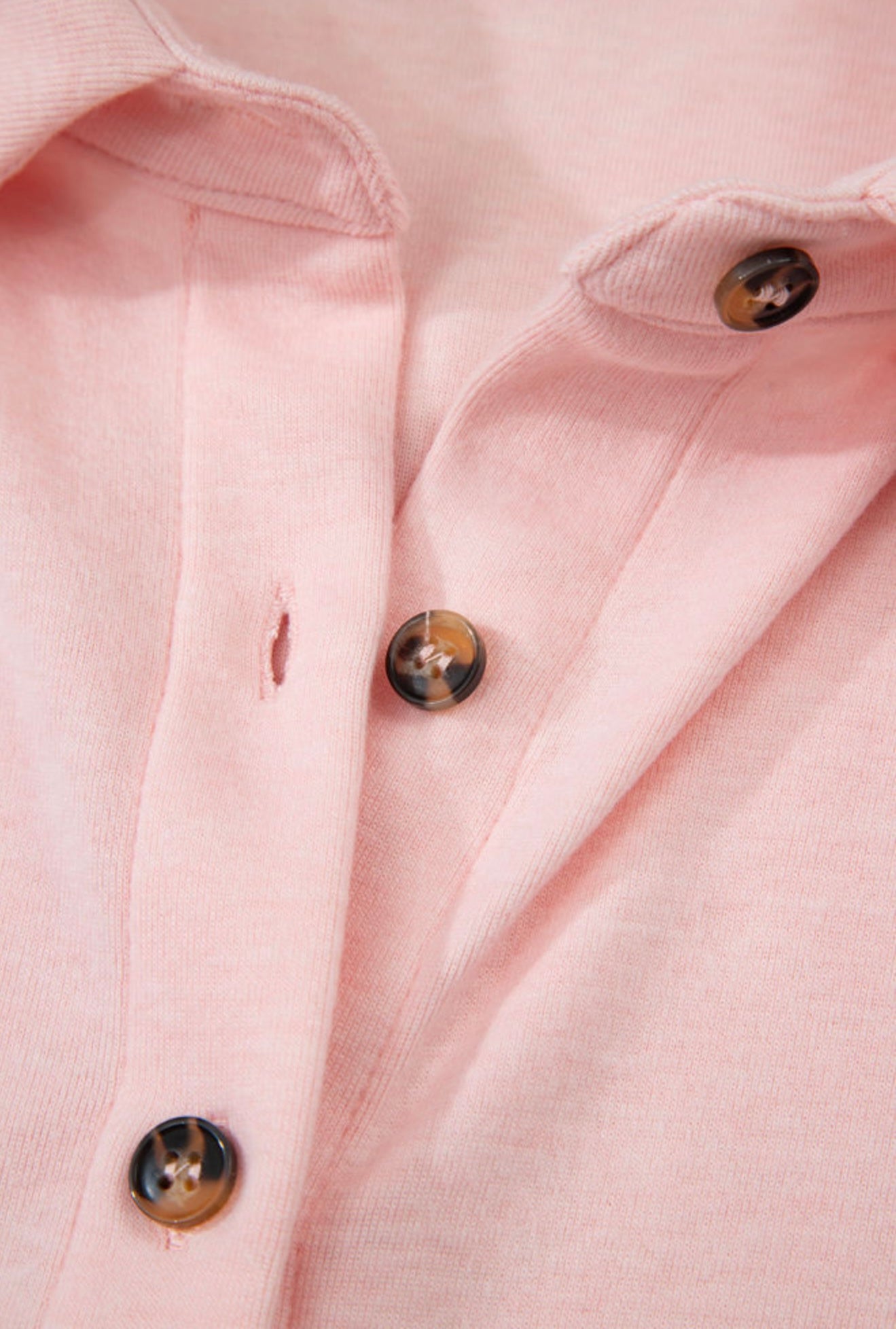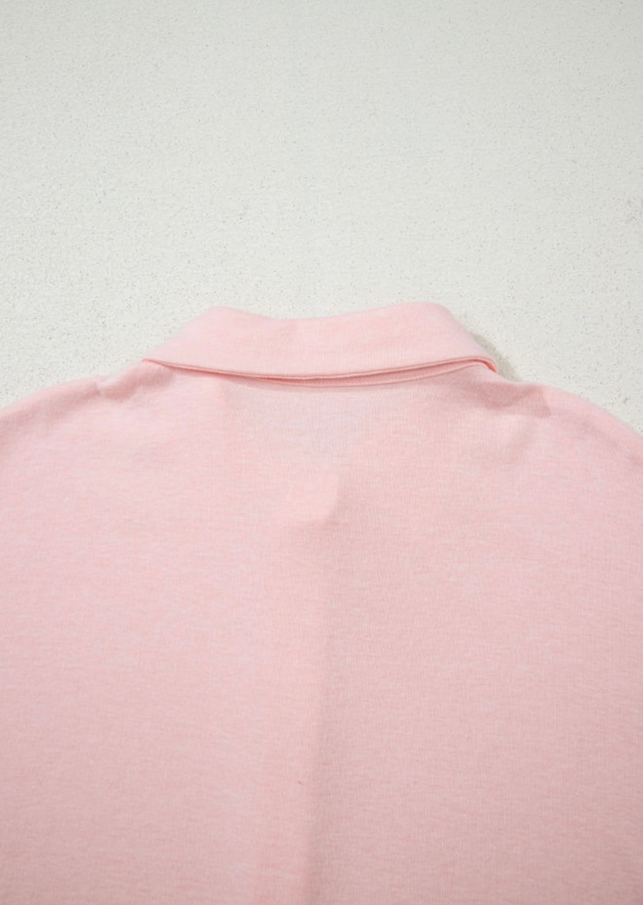 This charming 3-piece short set in pink includes a comfortable jacket, perfect for layering on cooler days. The coordinated pieces offer a stylish and easy outfit choice, combining casual comfort with a pop of cheerful color. Ideal for relaxed weekends or casual outings, this set keeps you looking fresh and feeling cozy.