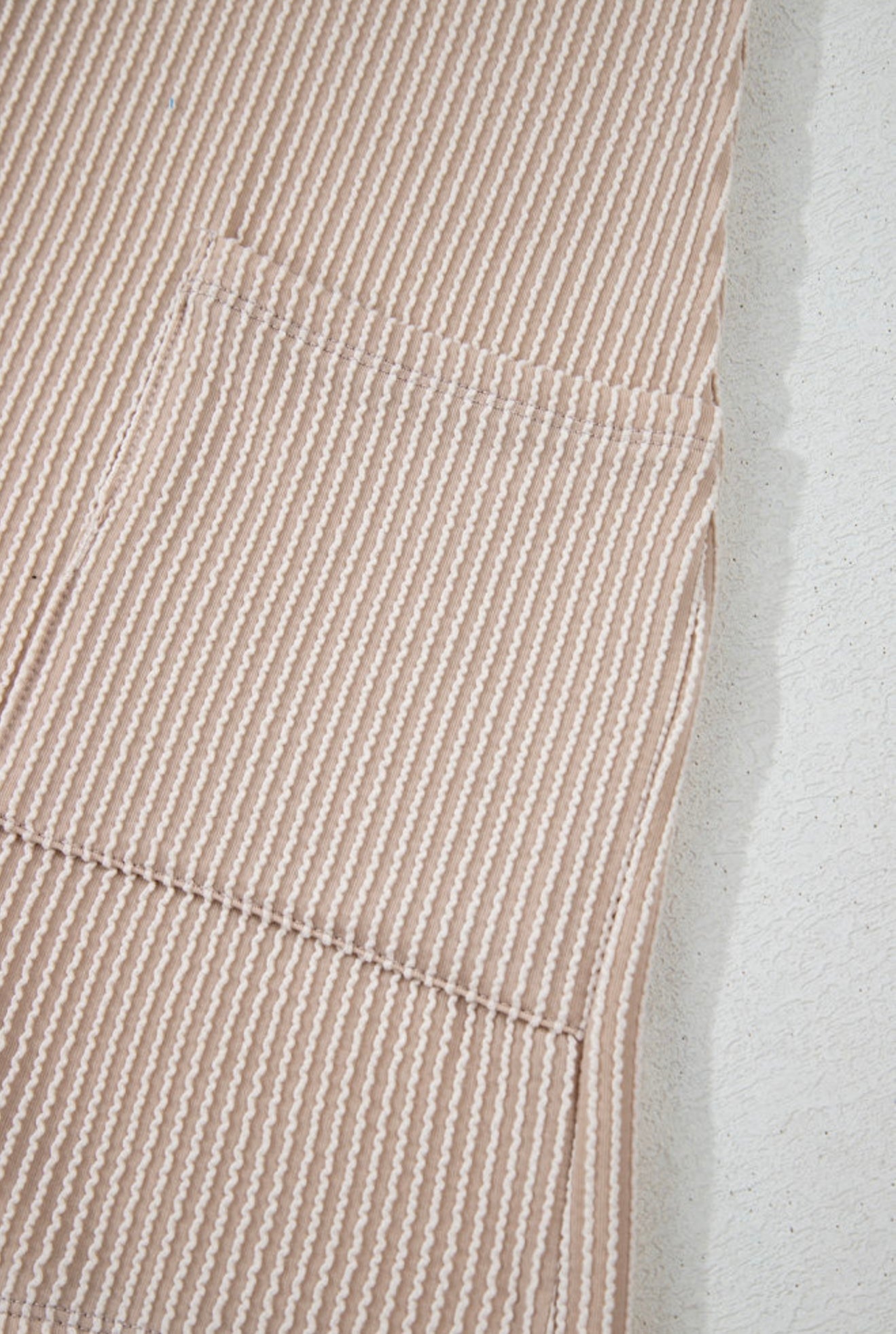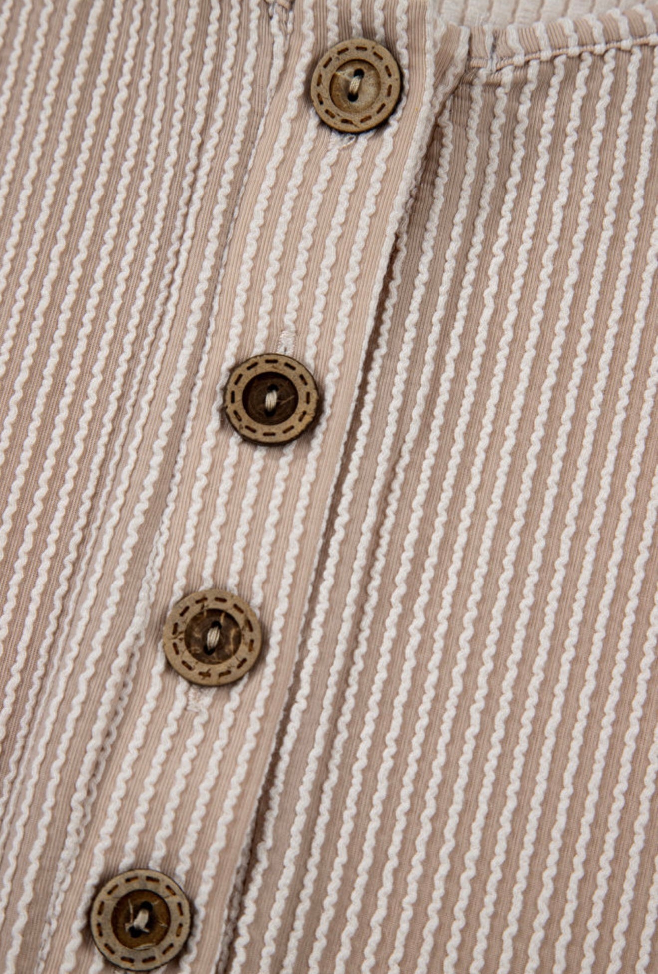 Beige Ribbed Knit Romper with Pocket and Button Detail