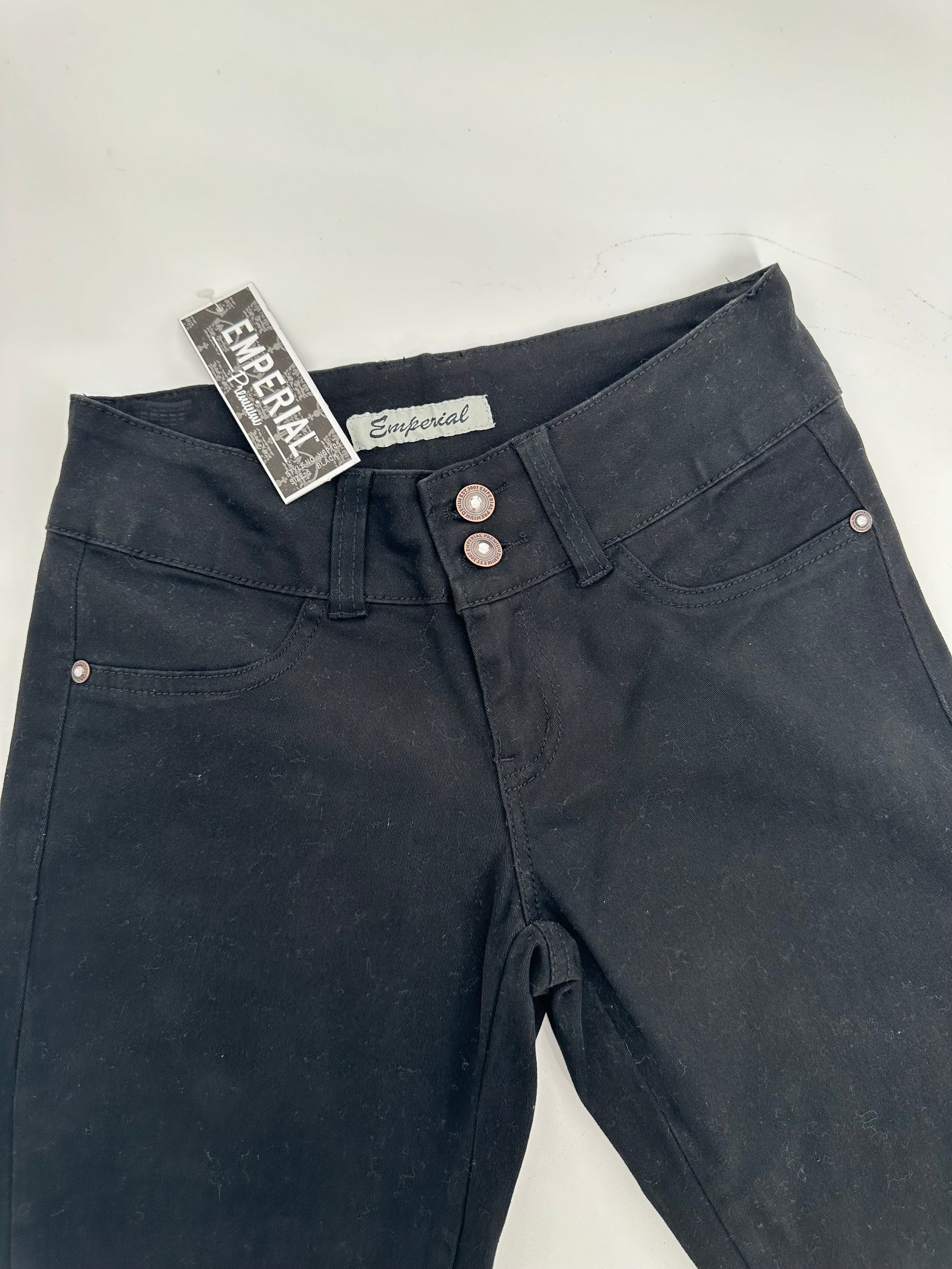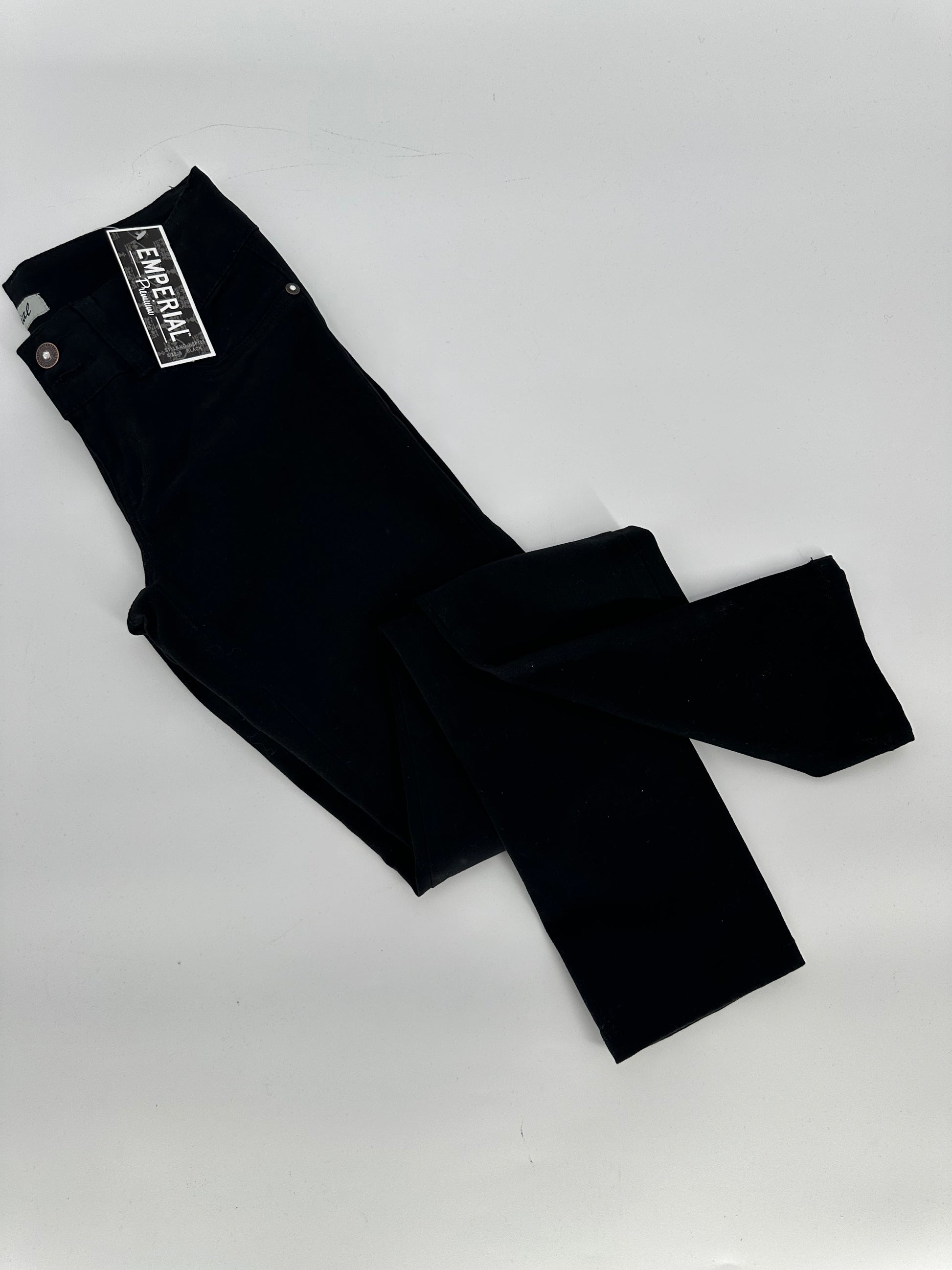Black brushed feel pants with double button closure.