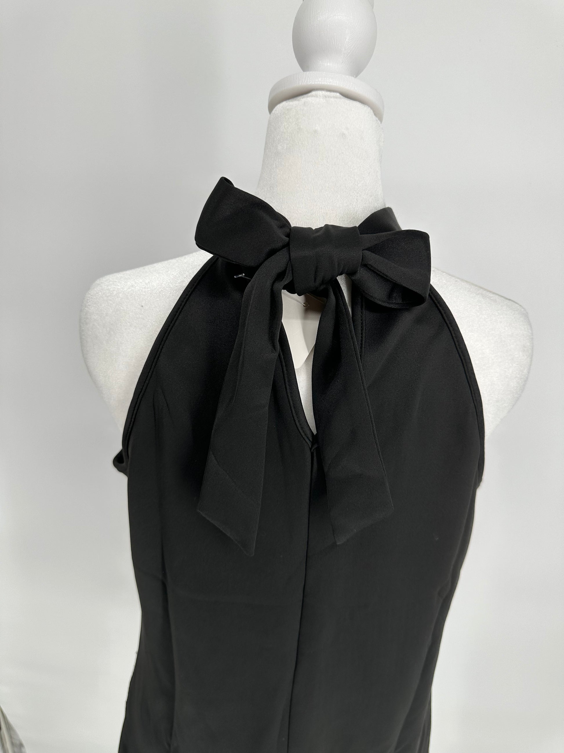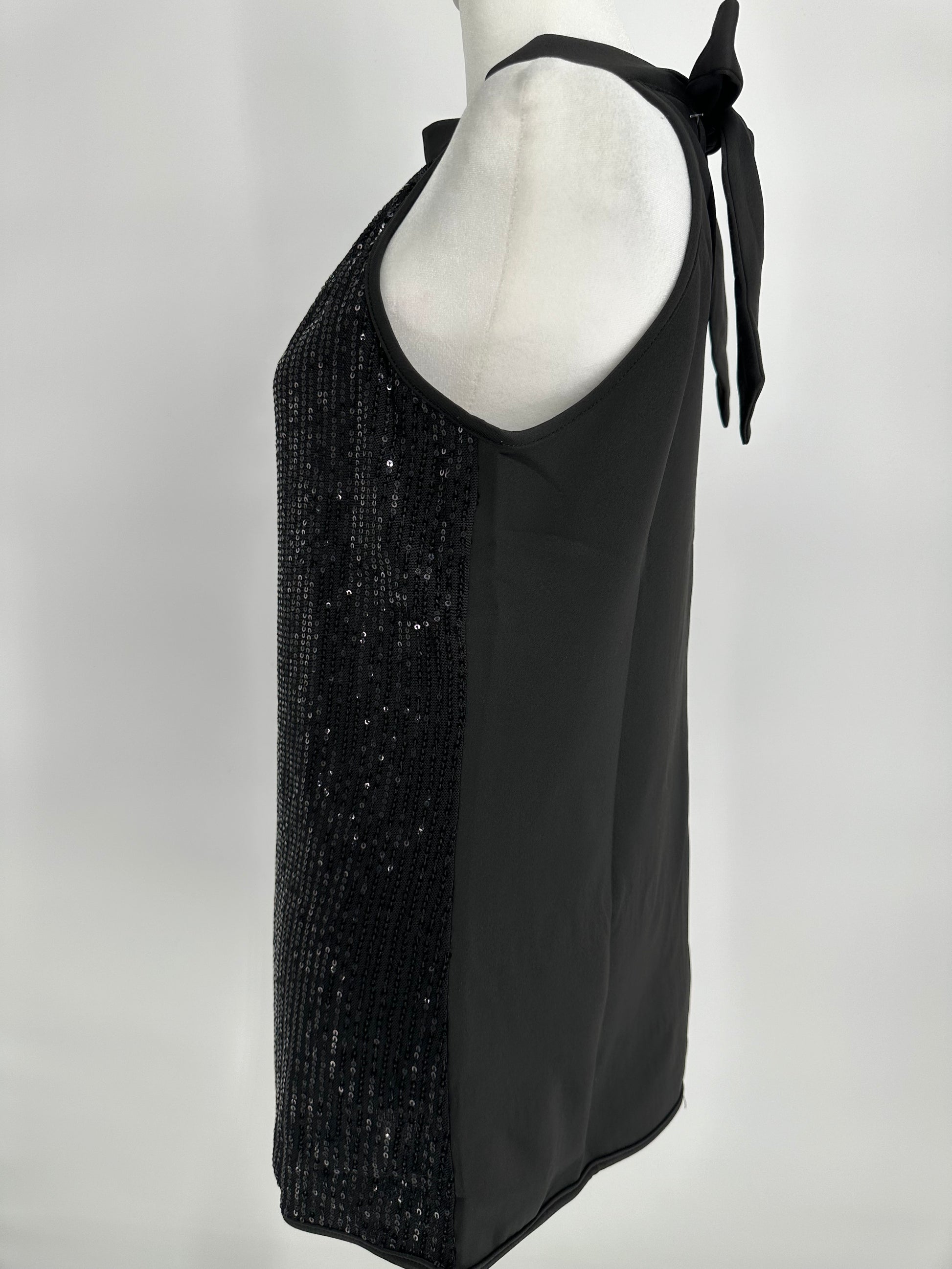 Black sequined front top with attractive wide tie closure at the back of the neck. Open shoulder design with high neckline. Super sexy!;)