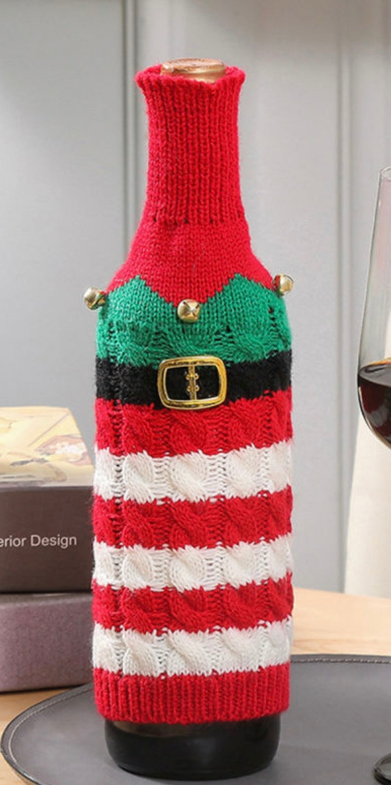 Wine/olive oil/desert sauce holiday sweater sleeve with bells! Turn the most simple gift into something extra special and memorable!