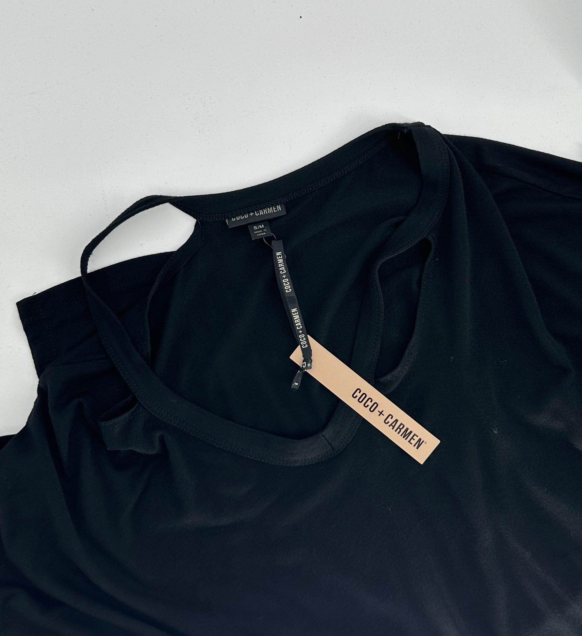 Black cold shoulder design high quality top. Unique neckline, very stylish.