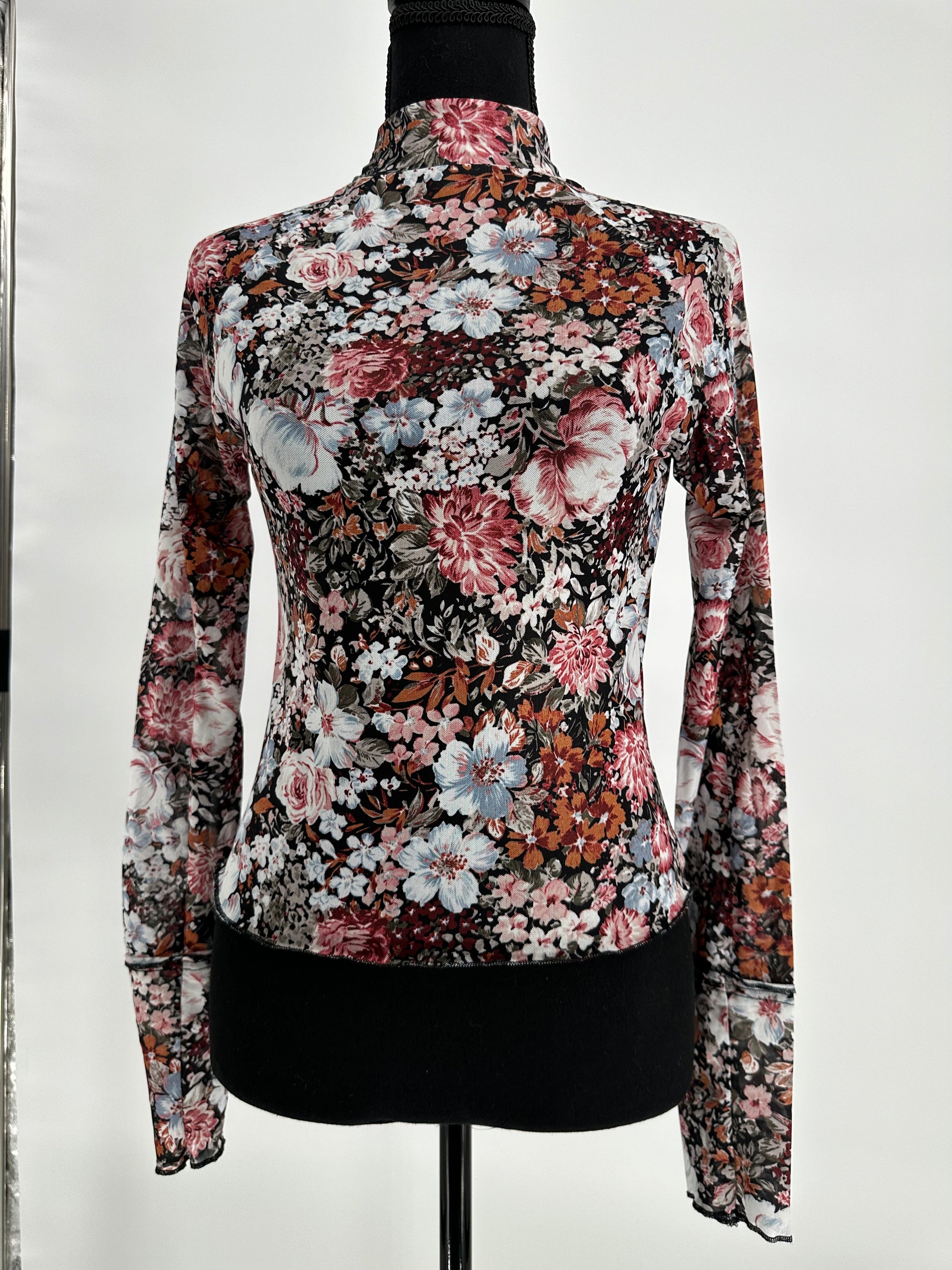 Exposed seam floral mesh top. Perfect piece to layer! Cute with a vintage T-shirt for a more trendy look, or looks nice with a jacket or even alone with a bralette!