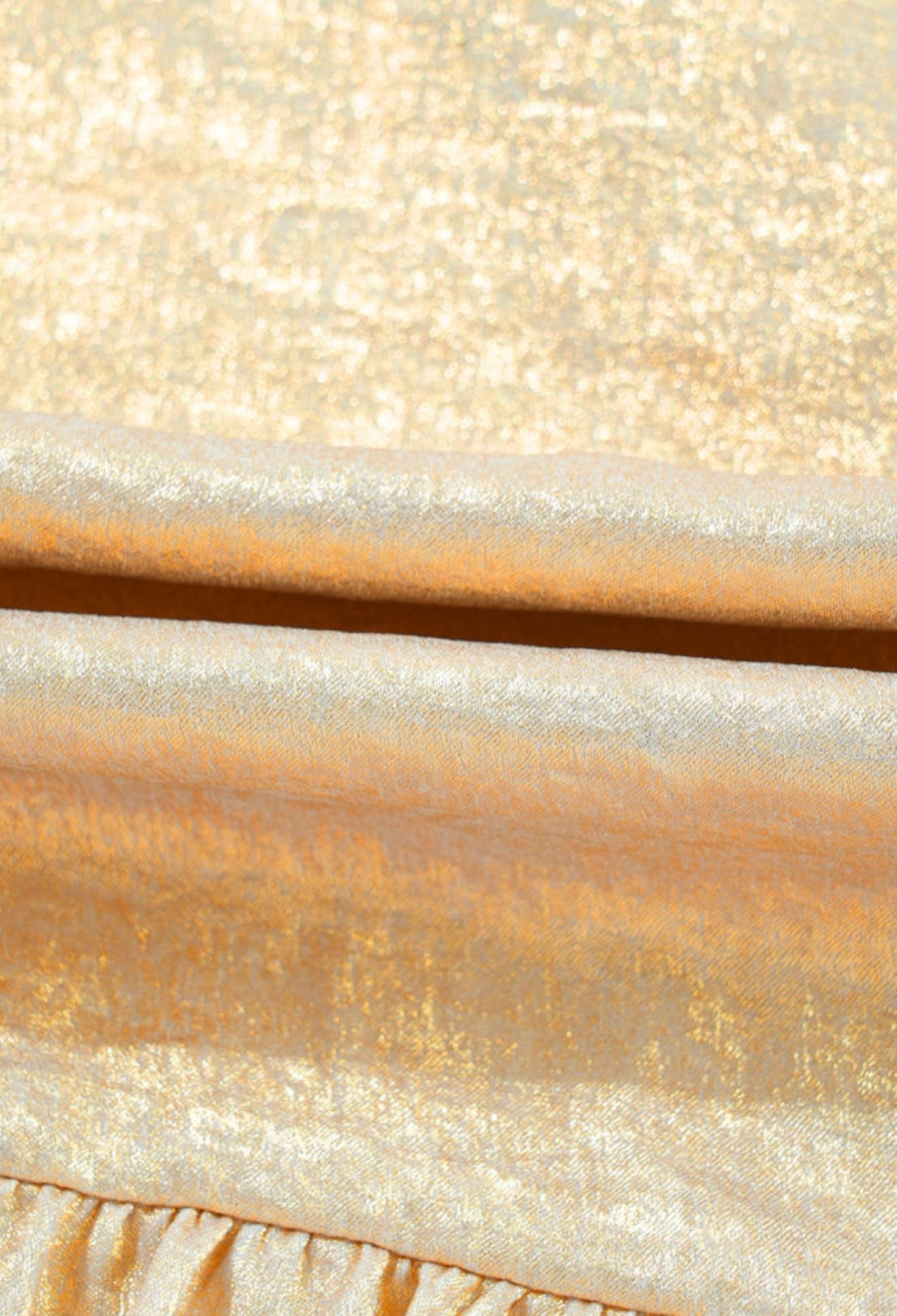 Long sleeve shimmer v neck top w/ruffle neck and hem top