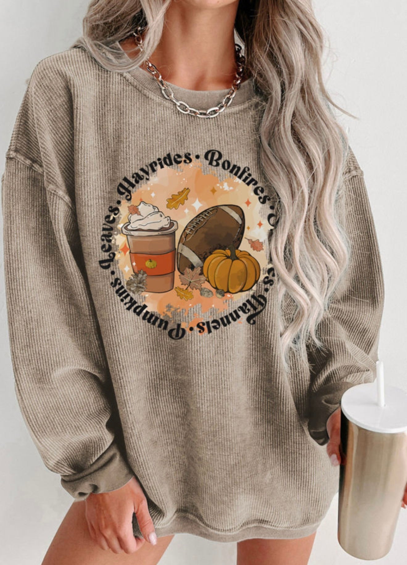 Fall ribbed corduroy top with all things fall featured right on the front! Great for bonfires, hay rides and everything in between!