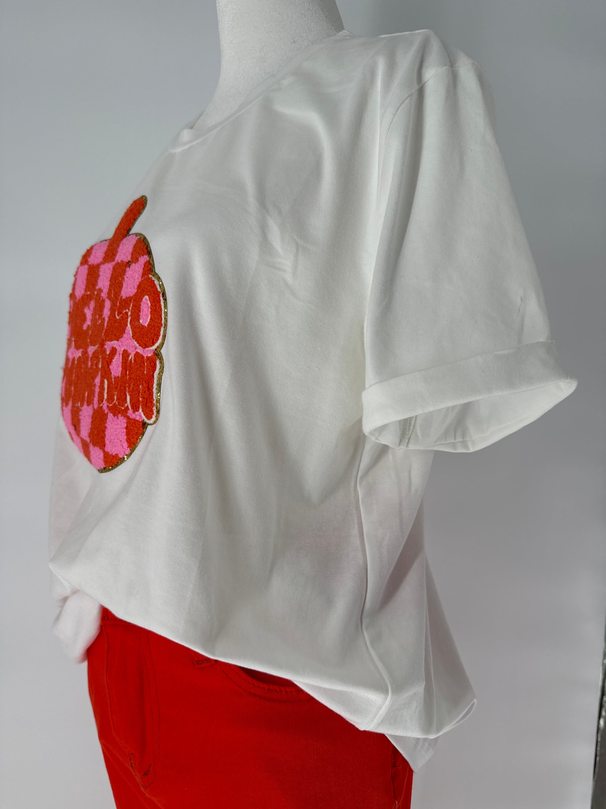 Celebrate the cozy season with the Hello Pumpkin Tee. This soft, comfortable shirt is perfect for casual days and festive fall outings. Its charming design adds a touch of autumn cheer to your wardrobe, making it an easy favorite for pumpkin lovers everywhere.