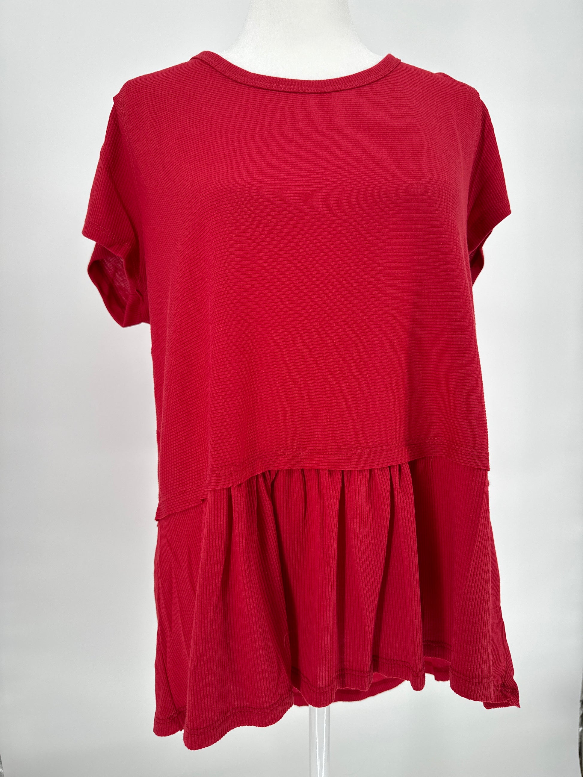 Red Umgee Ribbed Knit Top with Ruffled Bottom