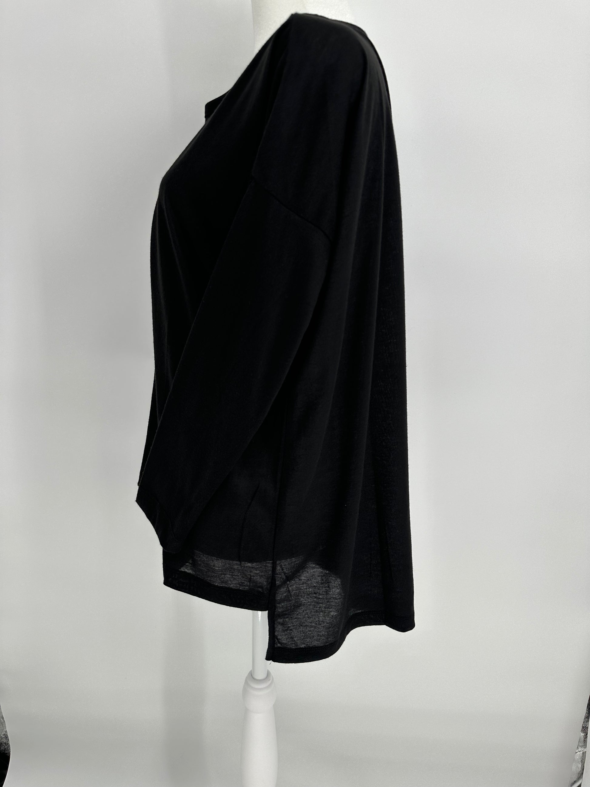 Black basic long sleeve tunic that is a staple item in any wardrobe. Great with leggings or under kimonos or vests!