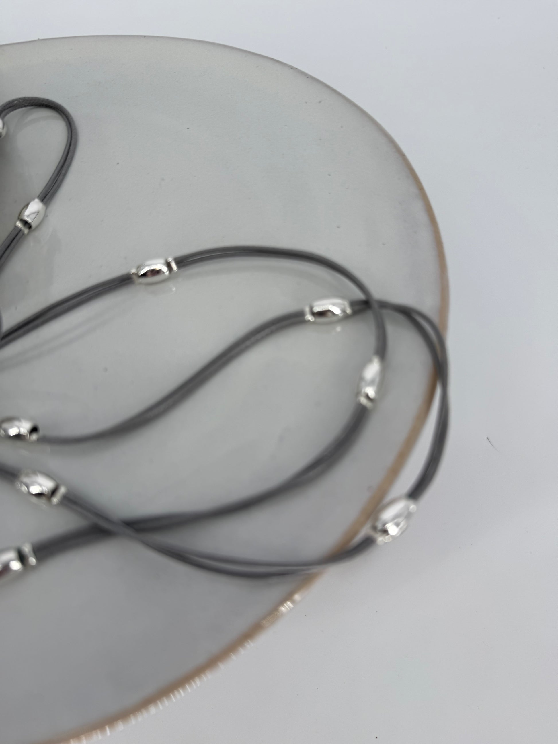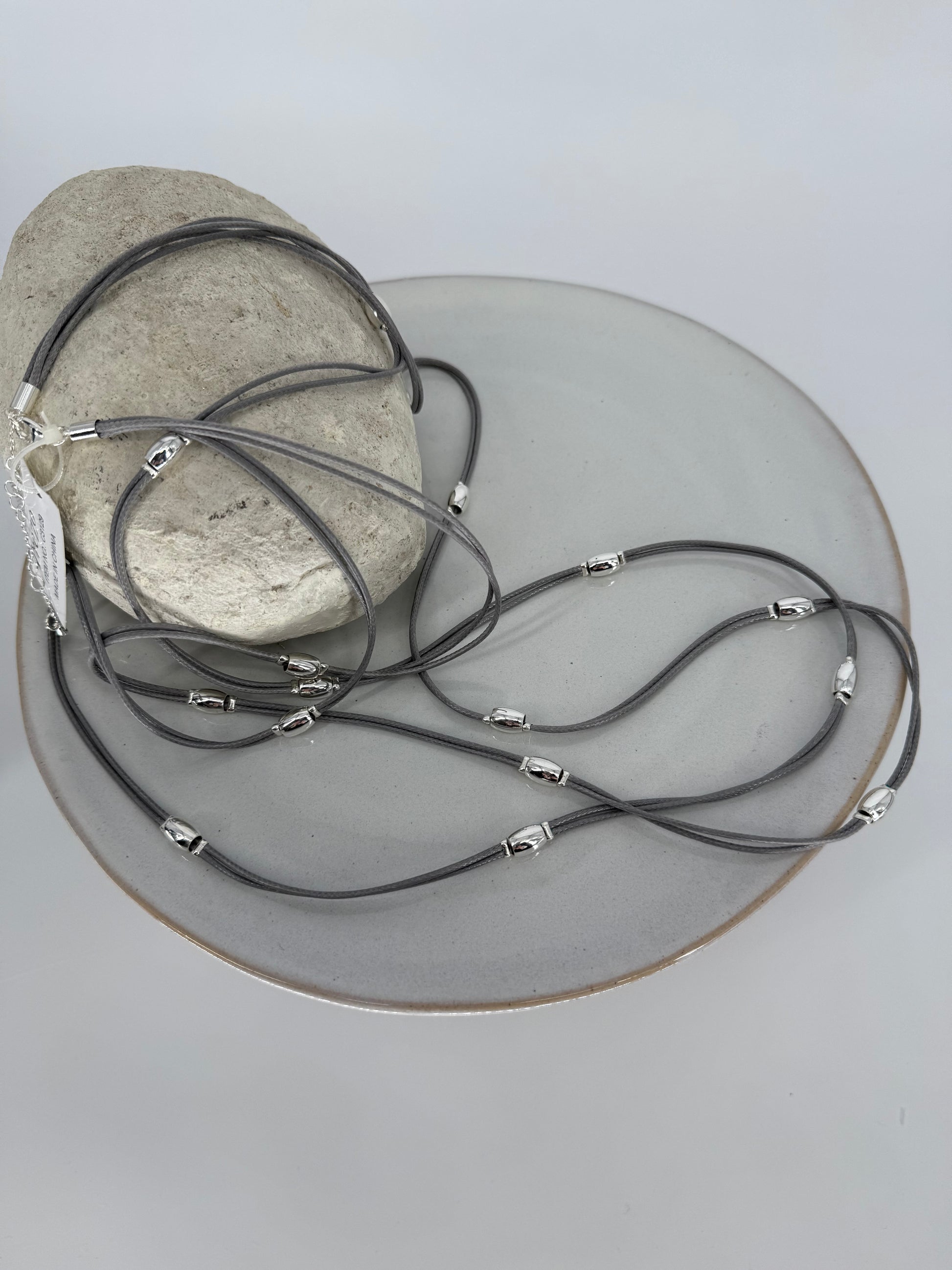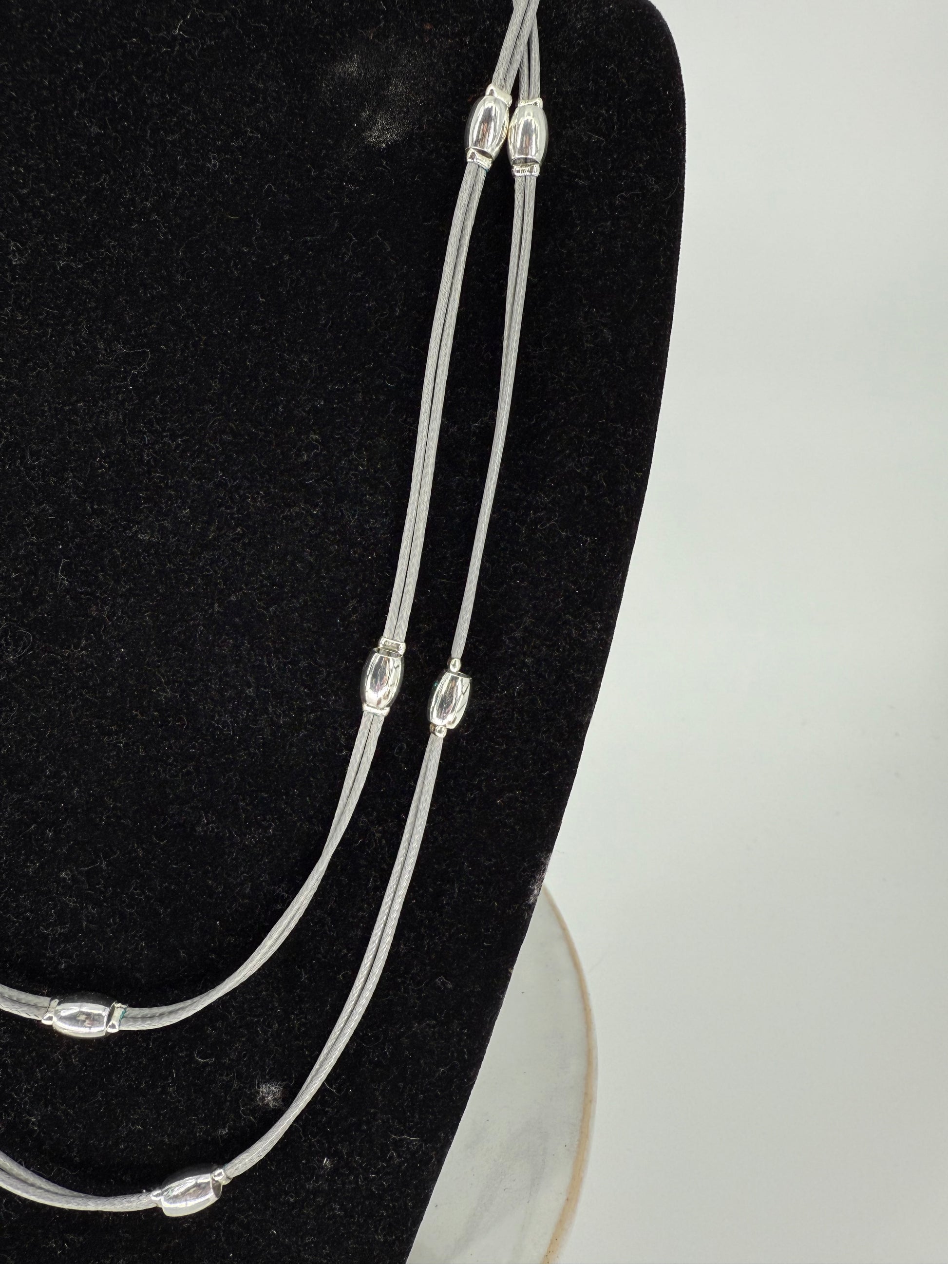 Trezo Gray Leather Double Necklace with Silver Accents