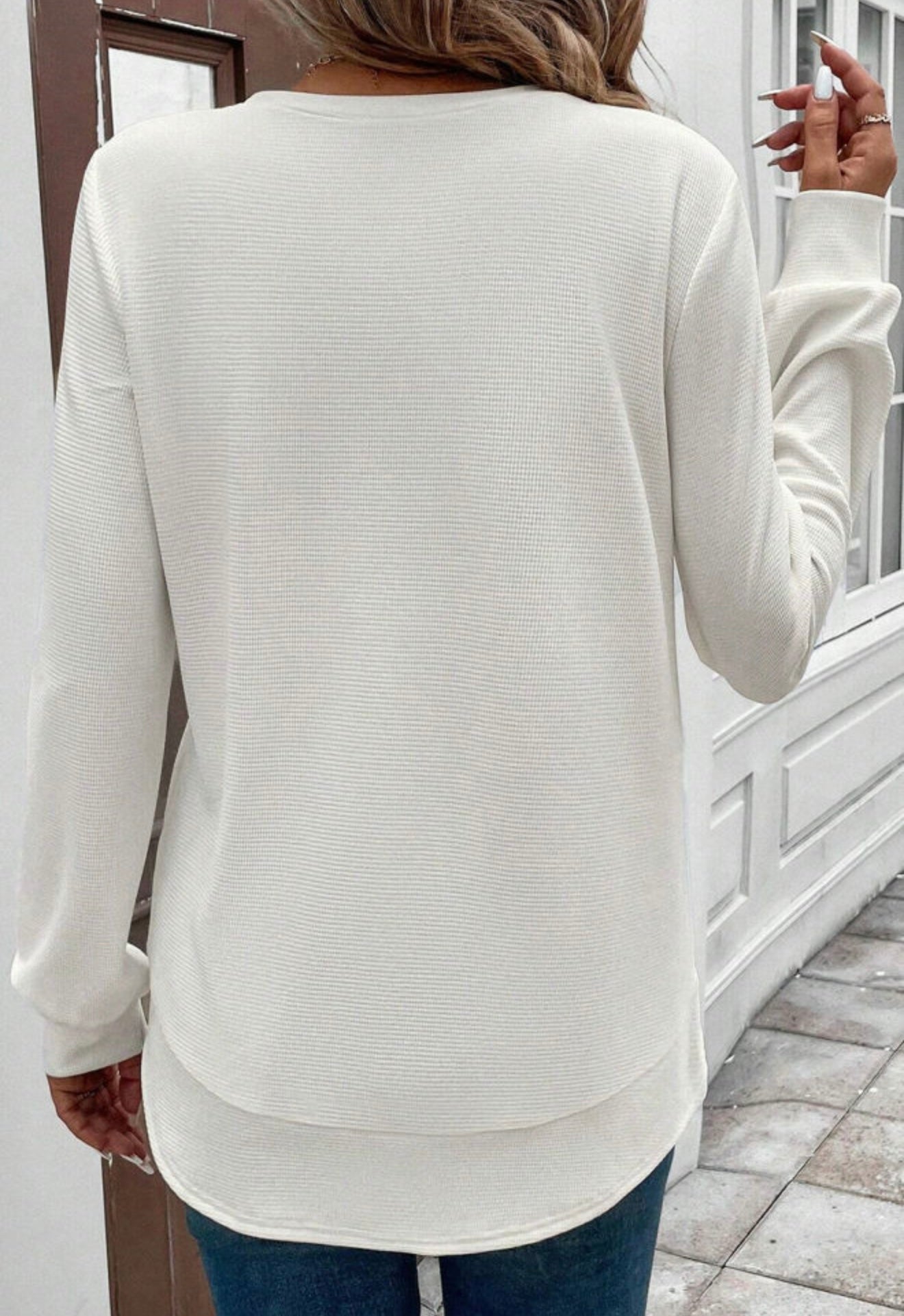 White thermal Top with Rounded Hem